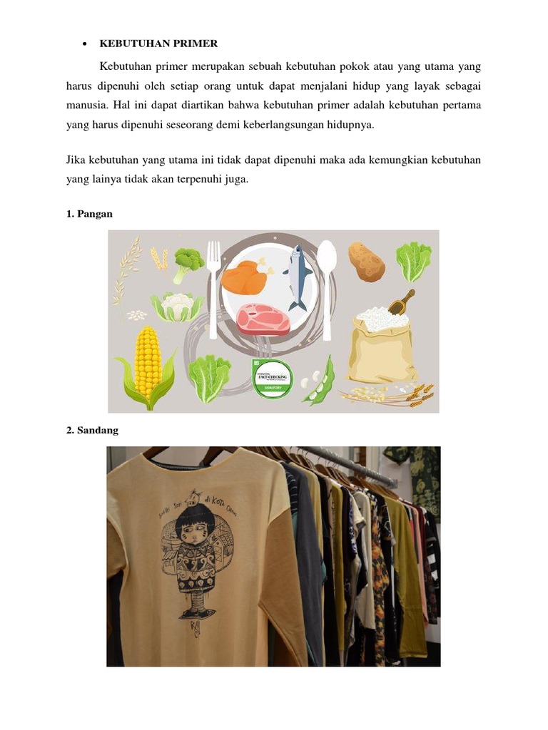 Contoh dari kebutuhan primer. Kebutuhan primer terdiri dari sandang pakaian pangan makan dan papan tempat tinggal. 1 kebutuhan pokok manusia adalah sandang pangan dan papan.