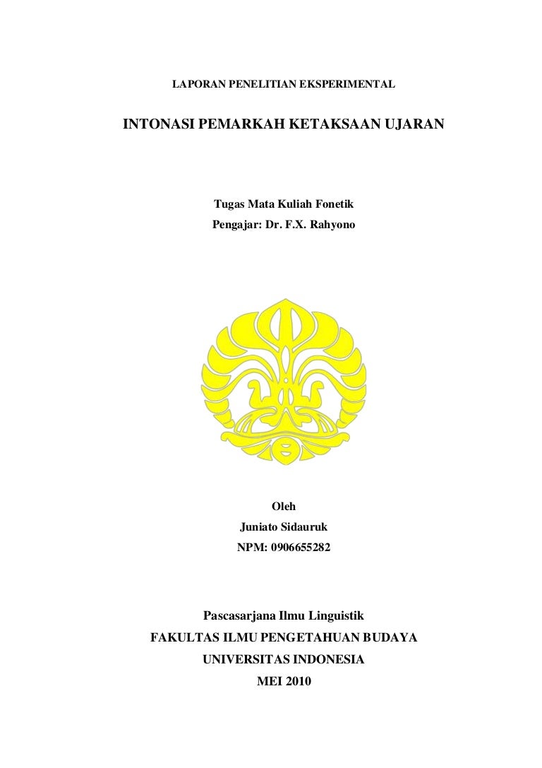 Pdf Penelitian Eksperimental Intonasi Pemarkah Ketaksaan Ujaran Kajian Fonetik